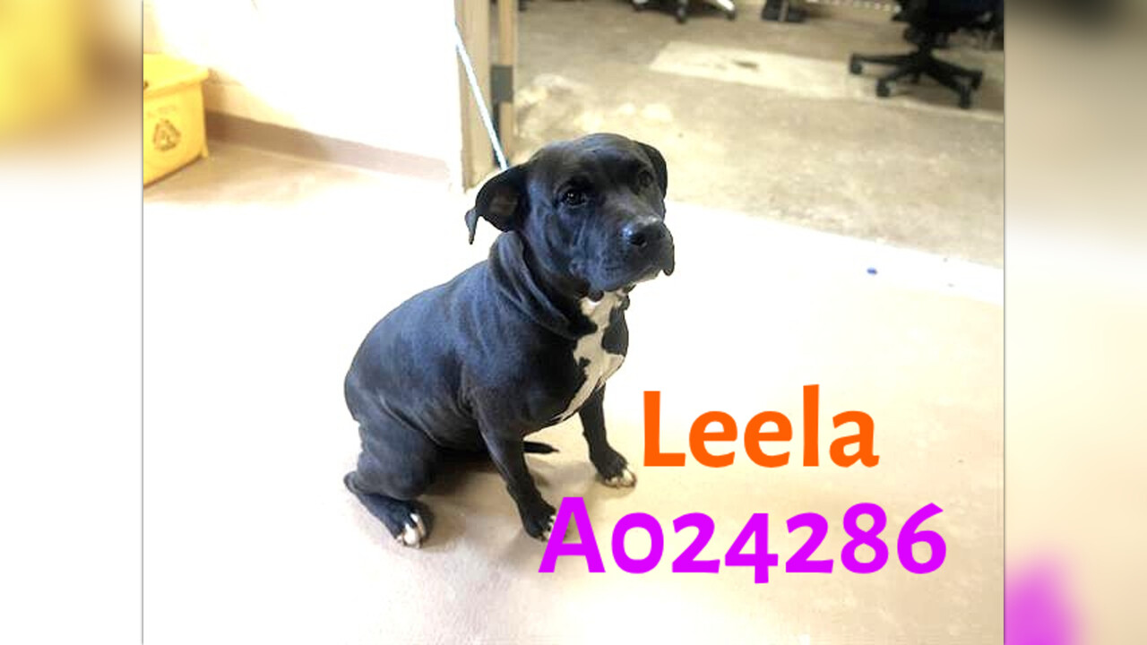 LEELA FEMALE - 69 LBS ON INTAKE DATE 3-19-25 sweet and dog and people friendly. SHE has now been placed on the urgent list and must have commitment by 4 PM on Friday, APRIL 11, or face being euthanized for space.