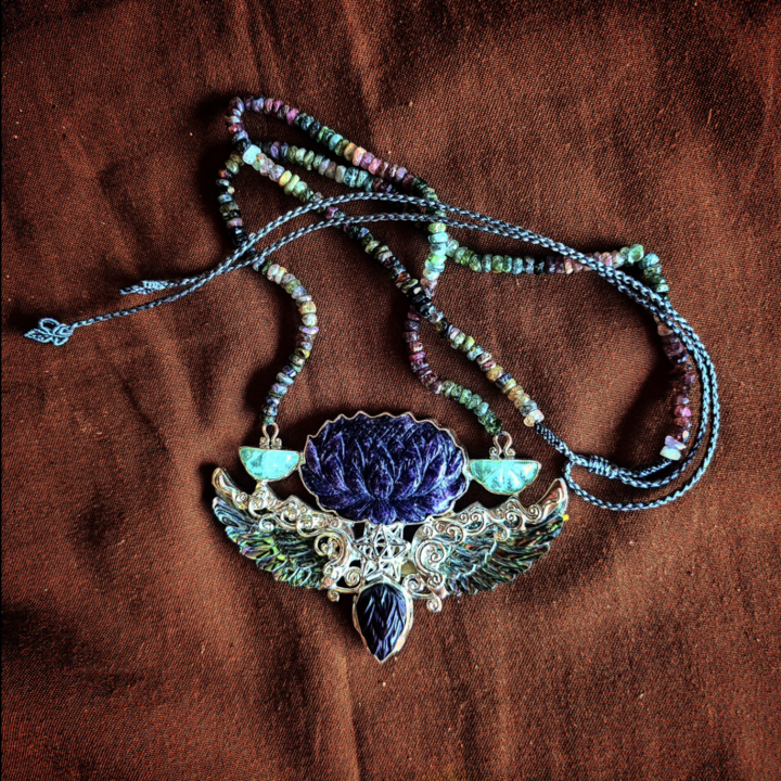 The drop at the bottom is the clarity distilled from the convergence of all the gifts of the elements of this piece and the higher purpose of the wone who chose to wear it.