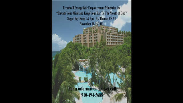 Treadwell Evangelistic Empowerment Ministries Inc will be hosting our annual “Elevate Your Mind and Keep Your Ear to the Mouth of God Crusade” in St. Thomas USVI. There are 4 mothers of Zion that would love to go but because their on a fix income can’t afford it. Would you please help me by sending donations that will help them to go. We also have 6 youth that would love the opportunity to experience mission on foreign ground. Please help me bring their vision to past. All of your donations are tax deductable. Thank You in Advance.