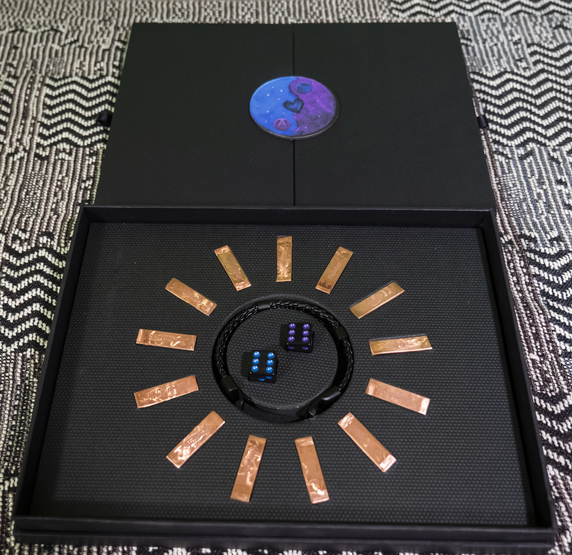 Two very important parts of this ritual box that make it unique are the dice and bracelet with attachments.