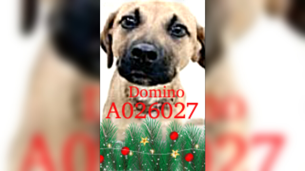 DOMINO- PUPPY - MALE -10 MONTHS old weighing 29 LBS finds himself in a kill shelter through no fault of his own and now on the URGENT LIST FOR SPACE. He MUST have commitment by 4 pm on December 19, or face being euthanized for space.