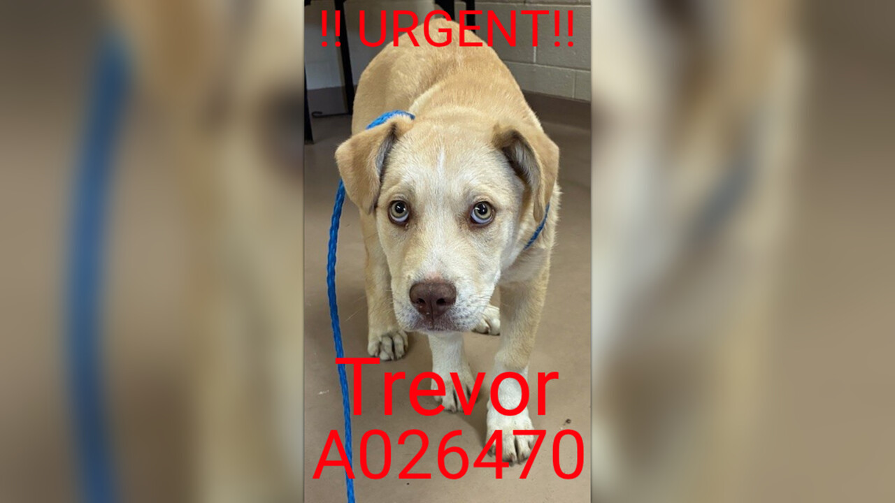 TREVOR -  LAB PUPPY - 7 MONTHS OLD - MEDICAL -MALE  - WEIGHING 32 lbs  finds hImself in a kill shelter through no fault of his own and now on the URGENT LIST DUE TO TESTING POSITIVE FOR PARVO.  He came into the shelter on Valentine's Day February 14, given vaccines and tested positive on Monday the 16th and started on meds.  Today his stool was more firm and he was eating.  He needs out of the shelter now.