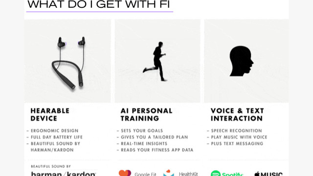 Each day, Fi would track activity, get smarter, and coach you to real results. Fi will help you meet your weight goals, improve your running, cycling and training. Plus, enjoy your favorite music and talk on the phone without ever needing to touch a single button. This truly is the future of fitness.
