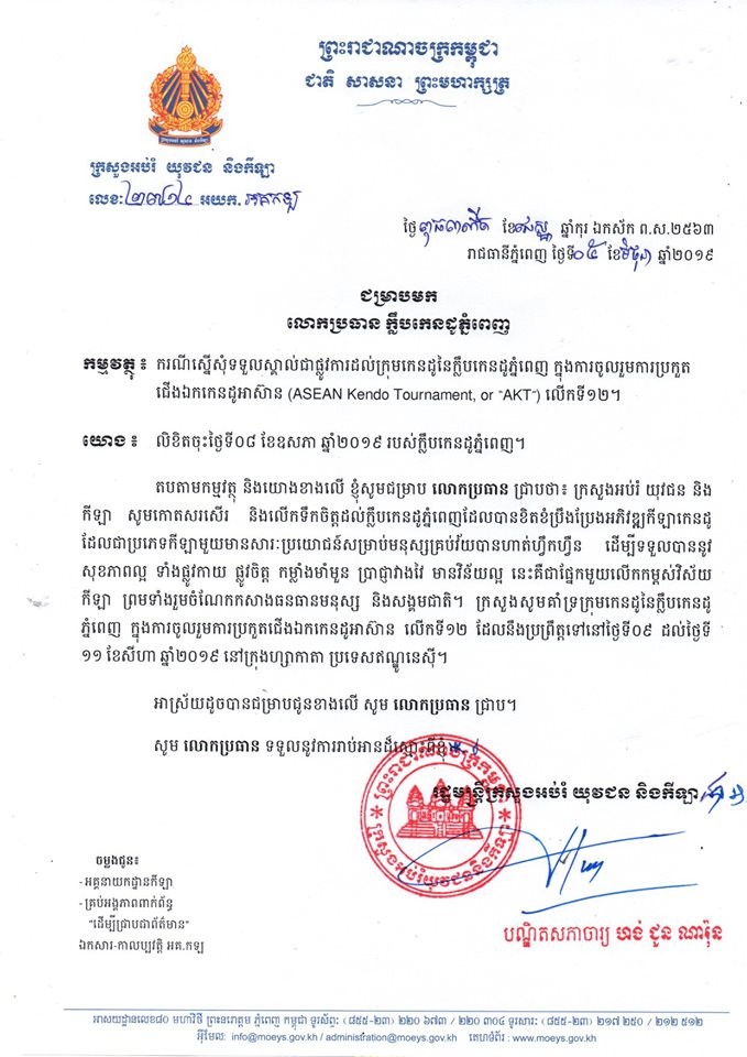 Our delegation members are officially recognized as a Cambodian National Team in joining the AKT by the Ministry of Education Youth and Sports.