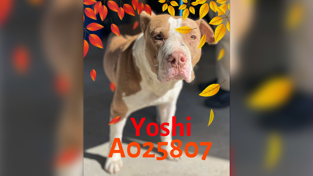 YOSHI - MEDICAL URGENT MALE 2 year old male (came in with Bowser) multiple wounds on side and neck from being attacked. He is getting meds and improving but still needs out of the shelter environment. - This poor boy finds himself in a kill shelter through no fault of his own and now URGENT. He MUST have commitment as soon as possible or face being euthanized.