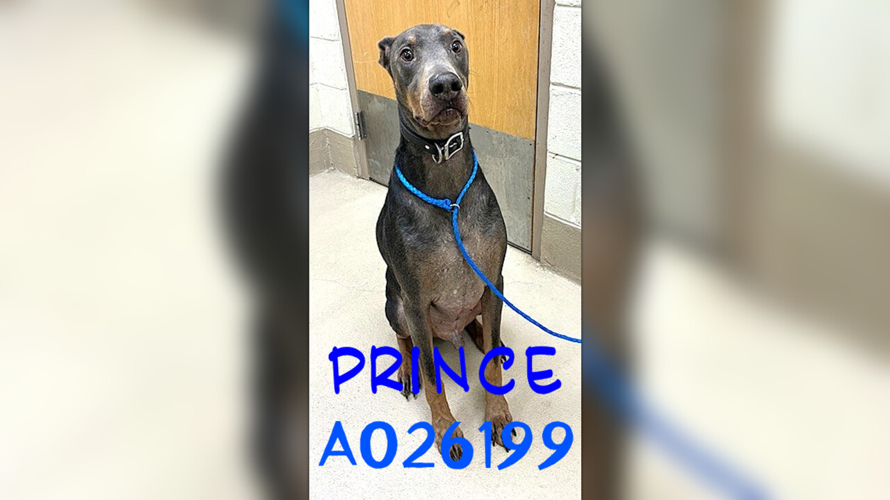 PRINCE - DOBERMAN- MALE - WEIGHING 78 lbs finds himself in a kill shelter through no fault of his own and now on the URGENT LIST FOR SPACE. He MUST have commitment by 4 pm on Friday, January 30 or face being euthanized. (Already neutered).