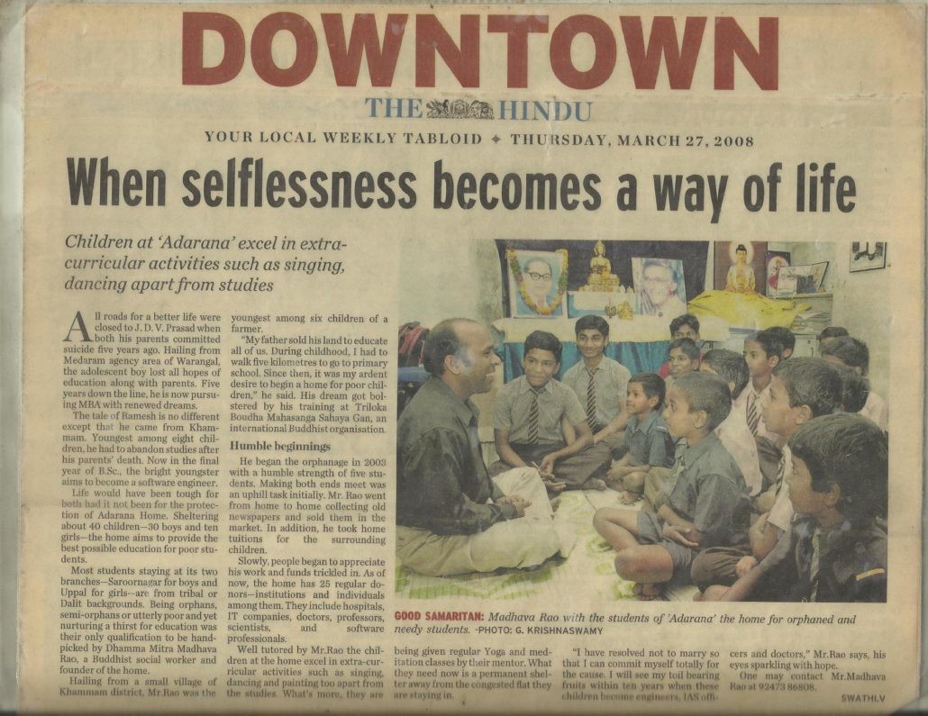 In the year 2003, he initiated the task of taking care of orphaned children by renting a building at –Warasiguda.