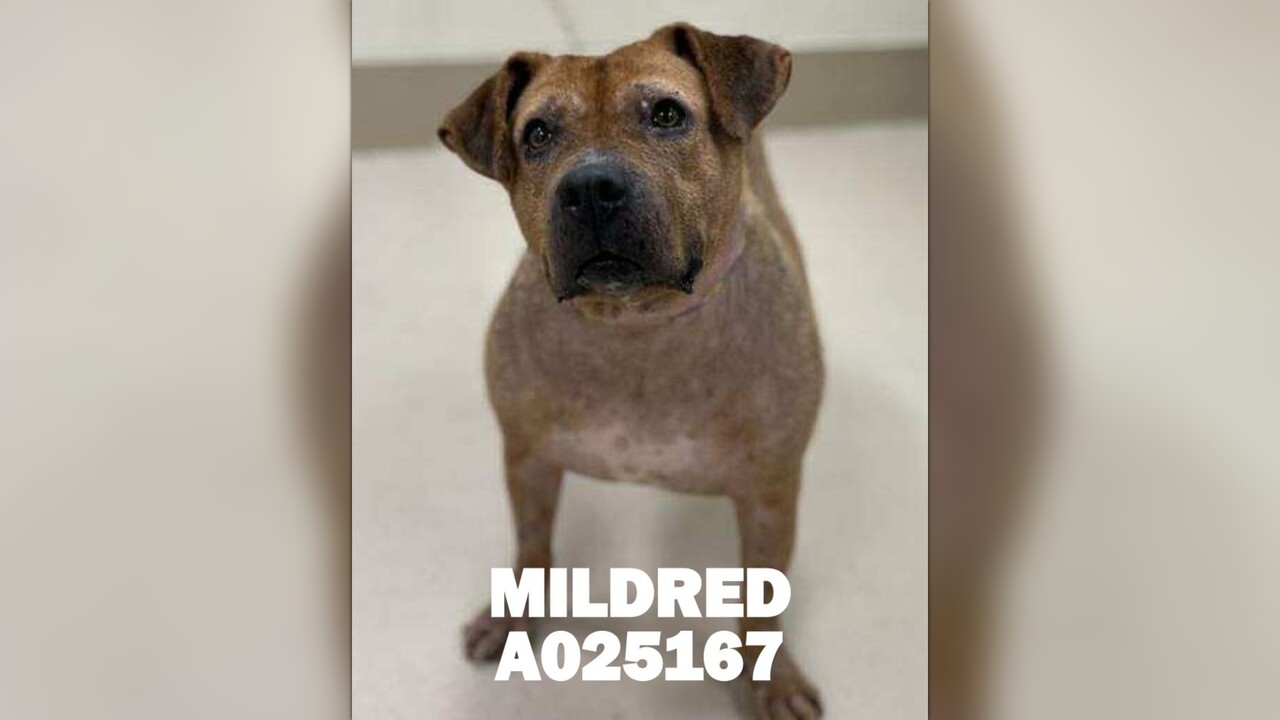 MILDRED (real name NYLA) was found by the deceased owners cousin.  NYLA was leading them back to her owner.  She is extremely urgent and found herself in a KILL shelter through no fault of her own and now URGENT.   This precious dog MUST have rescue commitment immediately and can be euthanized at any time.  Need commitment by 4 pm on Friday July 18.  She is approximately 8 years old and we do not know if spayed or not.  She is friendly and sweet.