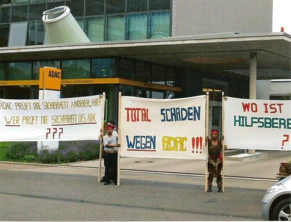 The other 5 Mexicans together with a worse injured person, without seen a doctor, were send away on a rental car to the north of Germany!!! About 200 Kilometers away! The German company ADAC did not wanted to pay Doctors, Hospitals and Phsiquiaters and we MUST make 45 Demonstrations outside at the ADAC national Company in Stuttgart, Munich, Cologne, Bonn, Nuremberg, Frankfurt, Aschaffenburg etc.