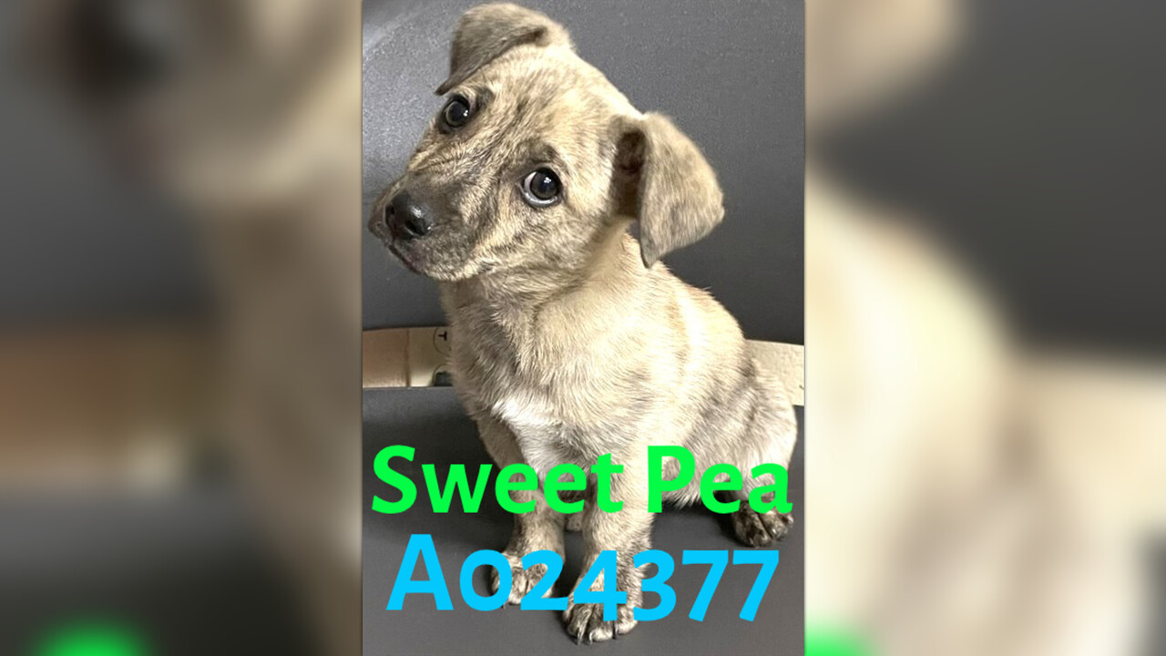 SWEET PEA - MALE - MIXED BREED - 6 WEEK OLD PUPPY 3.36 LBS ON INTAKE DATE 3-31-25 sweet and dog and people friendly. HE has now been placed on the urgent list and must have commitment by 4 PM on Friday, APRIL 11, or face being euthanized for space.