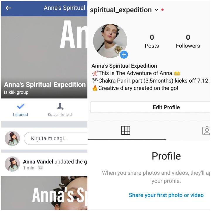 Trust Into The Unknown Receive this by supporting Anna’s Spiritual Expedition with 10€ or more if you wish! ✨Trust Into The Unknown gives you access to “Anna’s Spiritual Expedition” private Instagram account and/or private Facebook group plus as a gift you will also receive Heartfelt Message From The Future!✨ This offering gives You the opportunity to venture together with me through the first part of the practice. As the Instagram and Facebook group will be a form of a personal diary that is created on the go throughout the expedition’s first part. IN ESTONIAN Usaldades Teadmatust Võta see vastu, toetades Anna Spirituaalset Ekspeditsiooni 10€ või rohkem, kui soovid! ✨Usaldades Teadmatust, annab sulle ligipääsu “Anna Spirituaalse Ekspeditsiooni” privaatsele Instagrami kontole ja/või Facebook grupile. Kingitusena saad lisaks Südamliku Sõnumi Tulevikust!✨