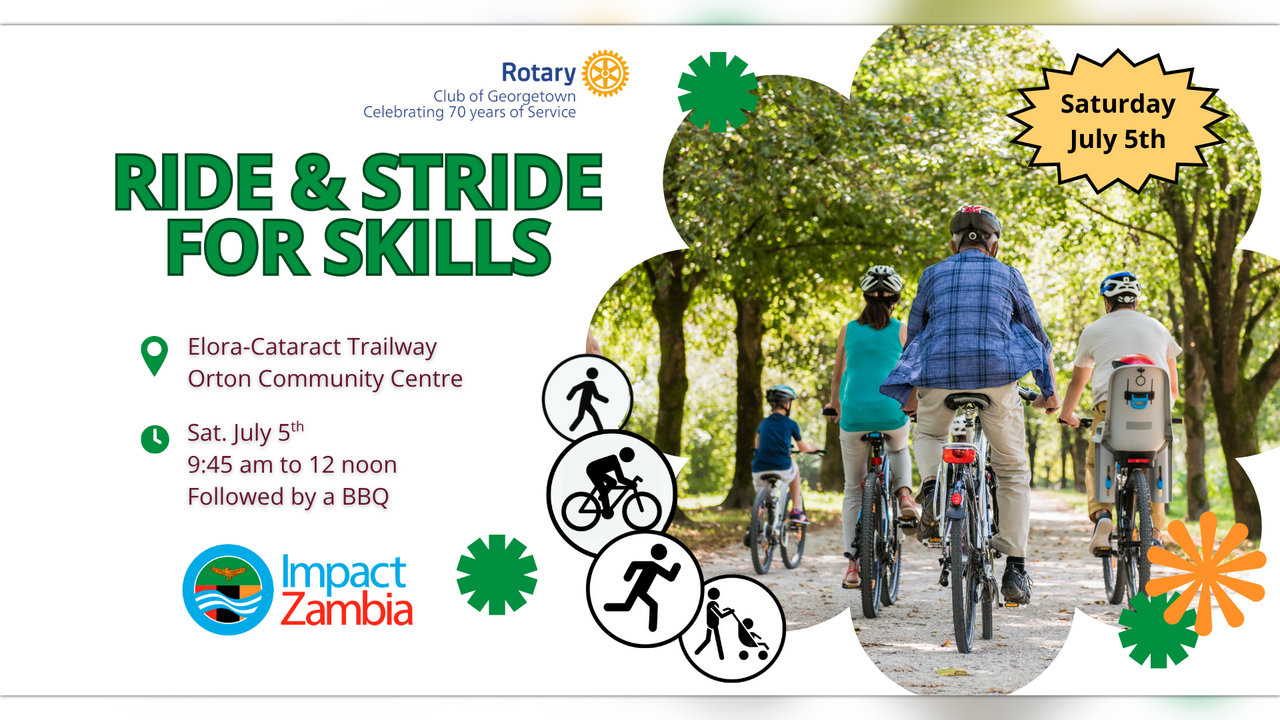 Come out for a family-friendly activity on the Elora-Cataract trail way starting at Orton on Saturday July 5, 2025 - 9.30 for 10 am to hike, run, cycle, or move in any way to raise funds for the Life Impact Training Centre in rural Zambia.