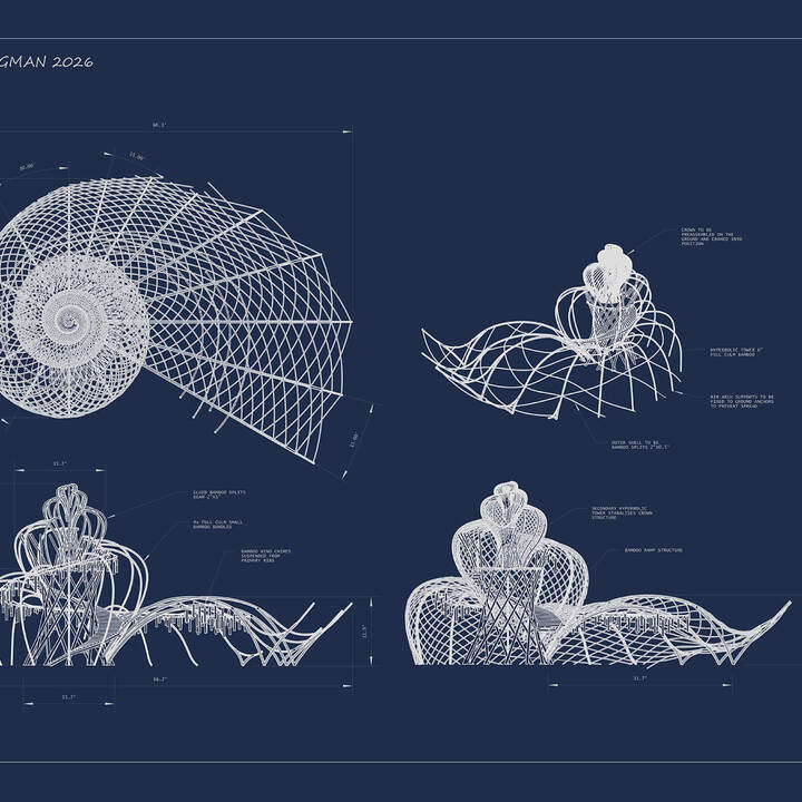This detailed architectural drawing reveals the full geometry and structural vision behind Resonance, capturing the flowing spiral form, spatial relationships, and engineering design of the installation. Each print is signed by the architectural and engineering team, offering a rare behind-the-scenes connection to the minds and craftsmanship that bring the structure to life.