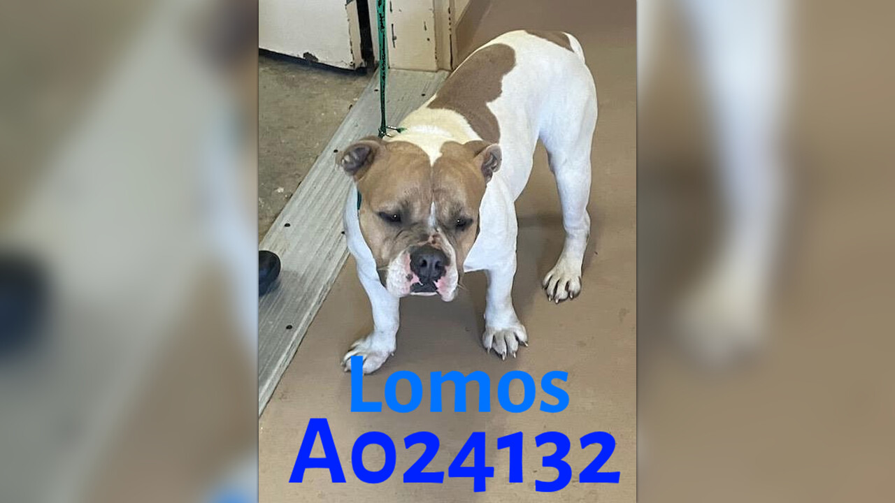LOMAS - MALE - BULLDOG 59 LBS ON INTAKE DATE 2-25-25 sweet and dog and people friendly. HE has now been placed on the urgent list and must have commitment by 4 PM on Friday, MARCH 21, or face being euthanized for space.