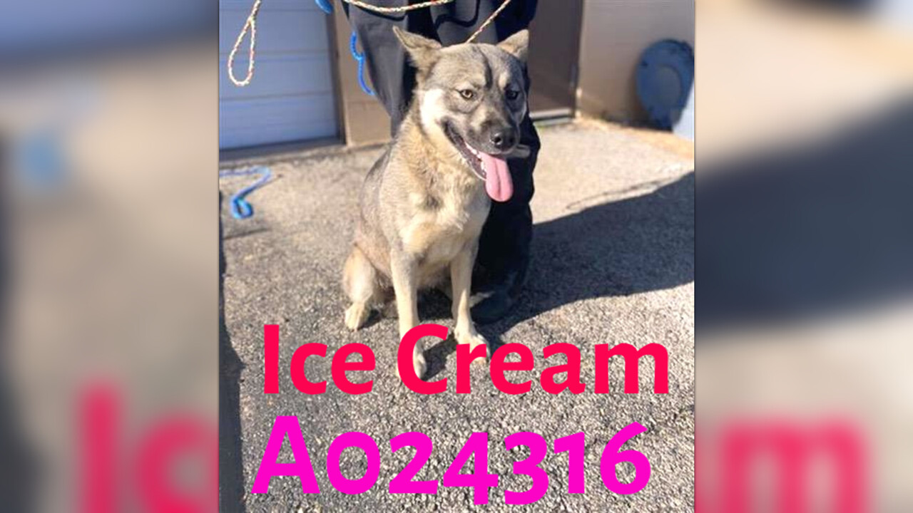 ICE CREAM-MIXED BREED  (she had 5 tiny puppies in the shelter) FEMALE - 57 LBS ON INTAKE  DATE 3-21-25  sweet and dog and people friendly.  SHE has  now been placed on the urgent list and must have commitment by 4 PM  on Friday, APRIL 11, or face being euthanized for space.