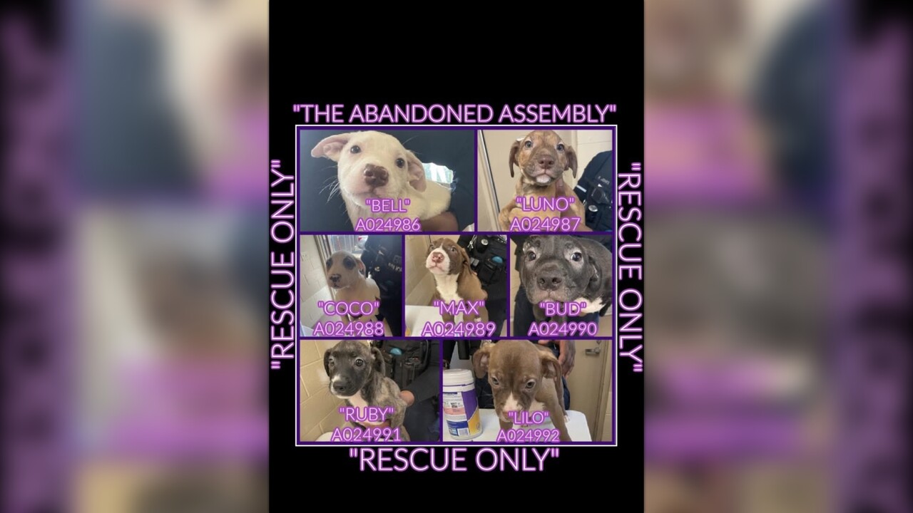 THE ABANDONED ASSEMBLY; A24986 BELL, A24987 LYNO, A24988 COCO, A24989 MAX, A24990 BUD, A24991 RUBY, A24992 LILO - abandoned and came into the shelter on 6-14. PUPPIES -very sweet and friendly. Need out of the shelter as soon as possible. Shelter environment is no place for young puppies.