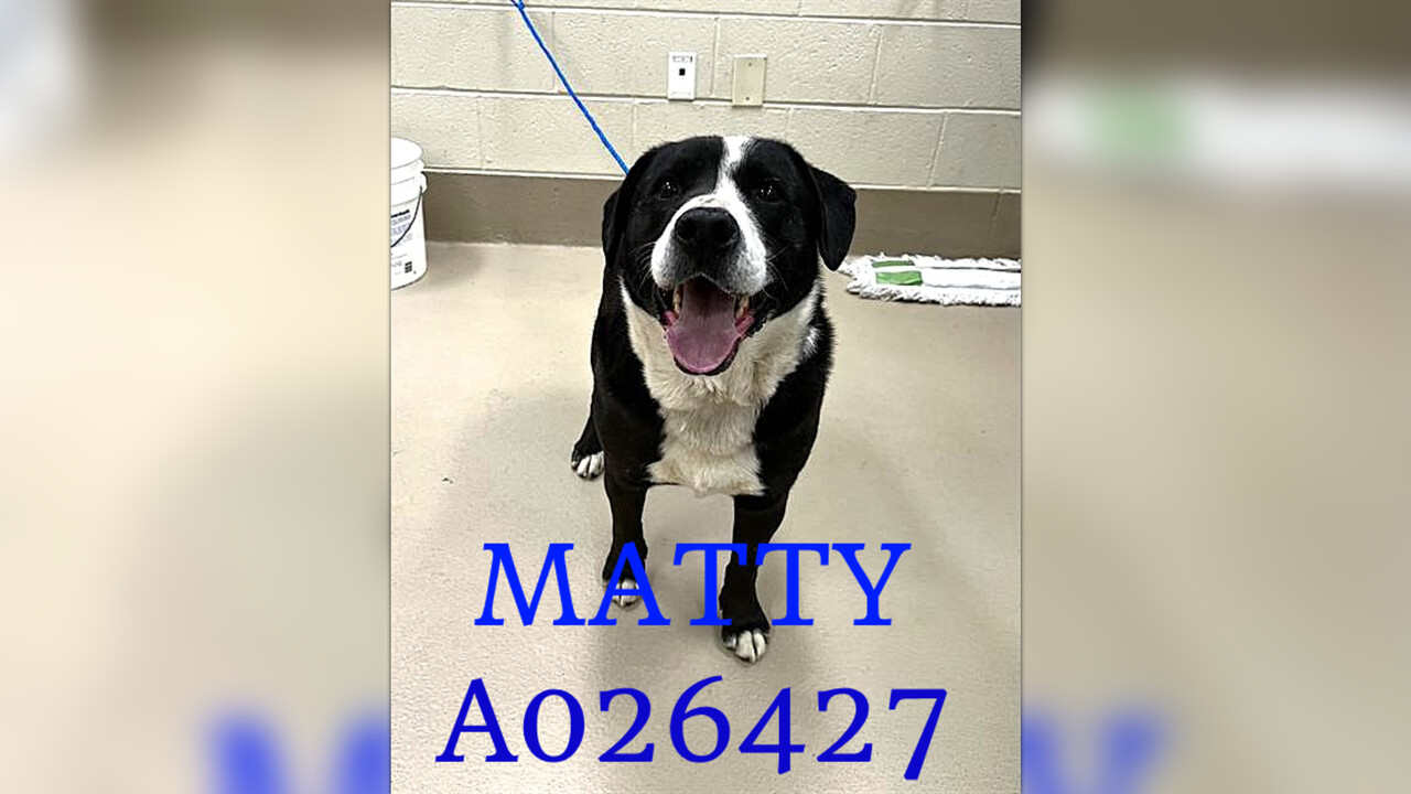 MATTY - MIX BREED -MALE - WEIGHING 53 lbs finds himself in a kill shelter through no fault of his own and now on the URGENT LIST FOR SPACE. He needs commitment by 4 pm on Friday, MARCH 6 or face being euthanized for space.
