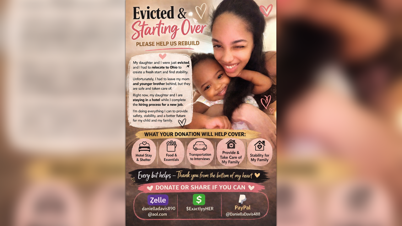 After being evicted, I had to make a very difficult and urgent decision to relocate to Ohio with my daughter in order to create a fresh start and find stability. Unfortunately, I did not have enough at the time to bring my mom and younger brother with me, but I made sure they are safe and have a place to stay where they are.
