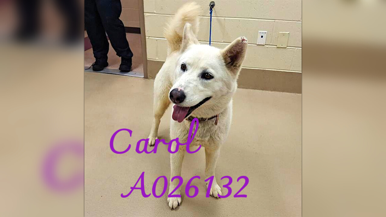 CAROL - LISTED AS WHITE HUSKY - ALSO LOOKS WHITE SHEPHERD - FEMALE -3 YEAR OLD WEIGHING 51 lbs finds herself in a kill shelter through no fault of her own and now on the URGENT LIST FOR SPACE. SHe MUST have commitment by 4 pm on Friday, January 9 or face being euthanized for space.