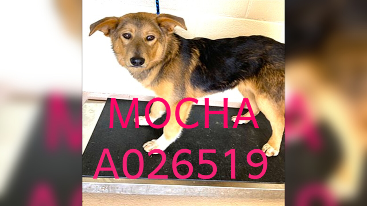 MOCHA - 12 MONTH OLD SHEPHERD PUPPY -FEMALE - WEIGHING 32 lbs finds herself in a kill shelter through no fault of her own and now on the URGENT LIST FOR SPACE. She needs commitment by 4 pm on Friday, MARCH 13 or face being euthanized for space.