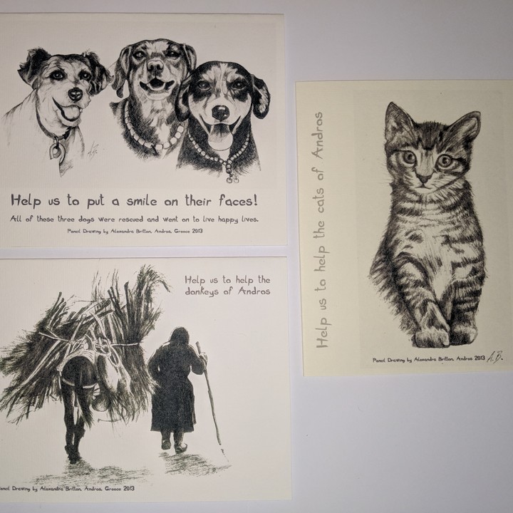 My name is Alexandra Britton. I am English and have been living in Greece for 40 years, working in tourism previous to my retirement in 2005. Since then, I have been living in Arni, a small mountain village on the island of Andros, where I have been rescuing animals.