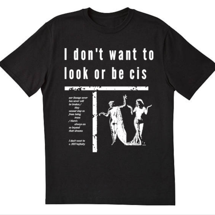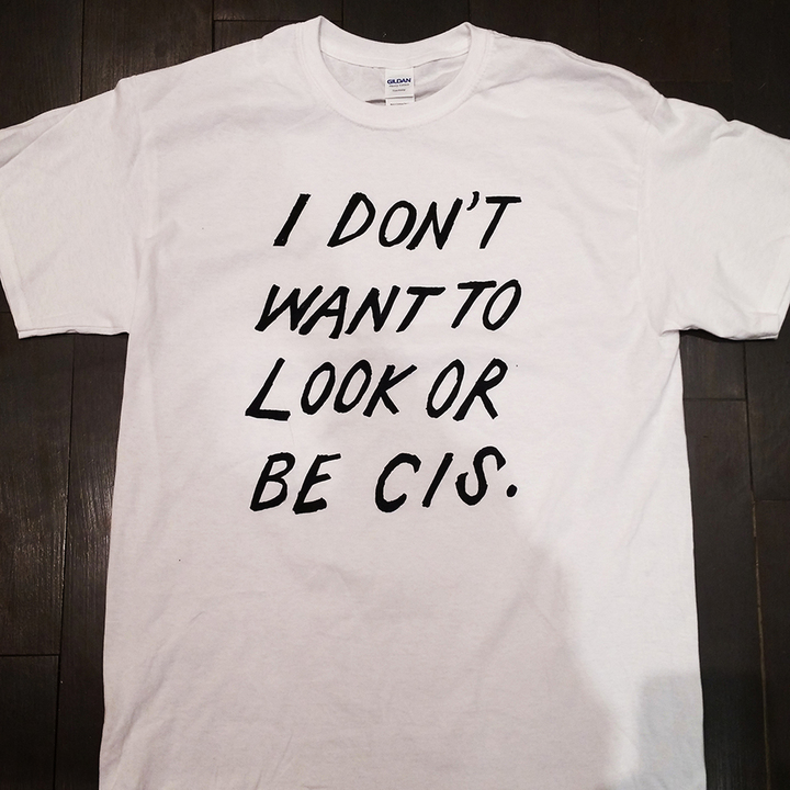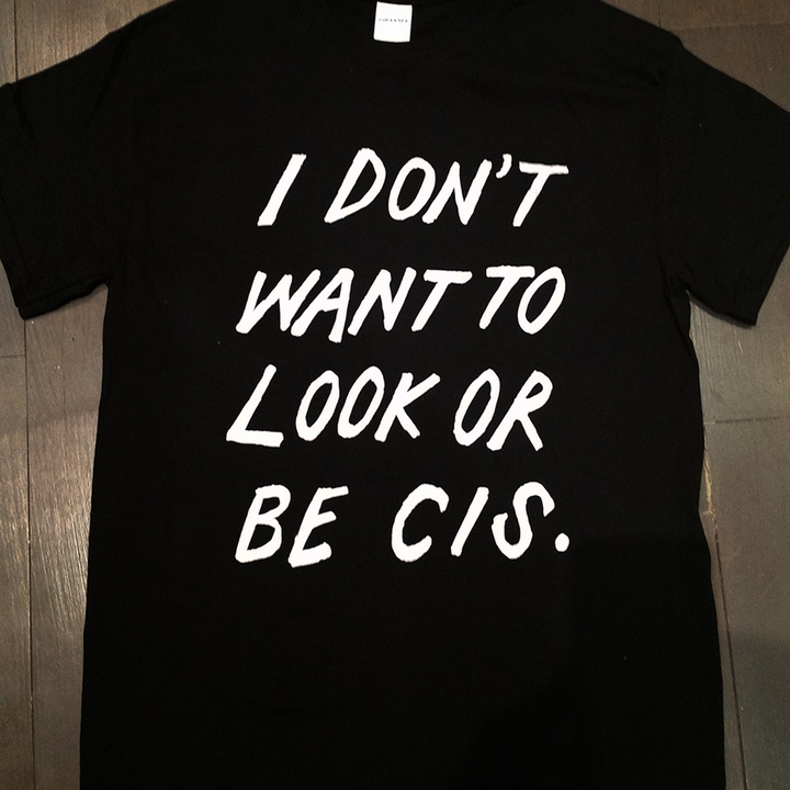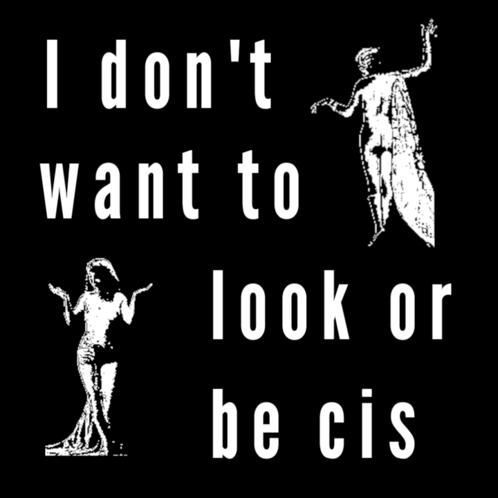 Sticker version of the I Don't Want to Look or Be Cis 2.0 design,