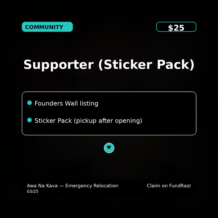 You’re a Community Supporter . You’ll be on the Founders Wall — and you’ll get an Awa Na Kava Sticker Pack as our thank-you.