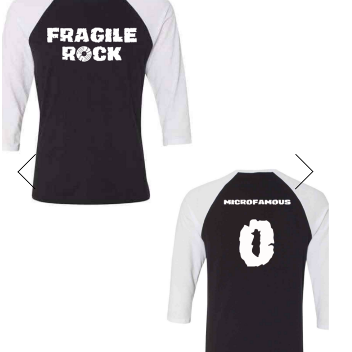 Step up your game with this limited edition, two-sided 3/4 sleeve raglan. This premium unisex jersey features the Fragile Rock logo on the front, with "Microfamous" and the number 0 emblazoned on the back. It’s the ultimate way to show you’re a fan from the ground floor up.