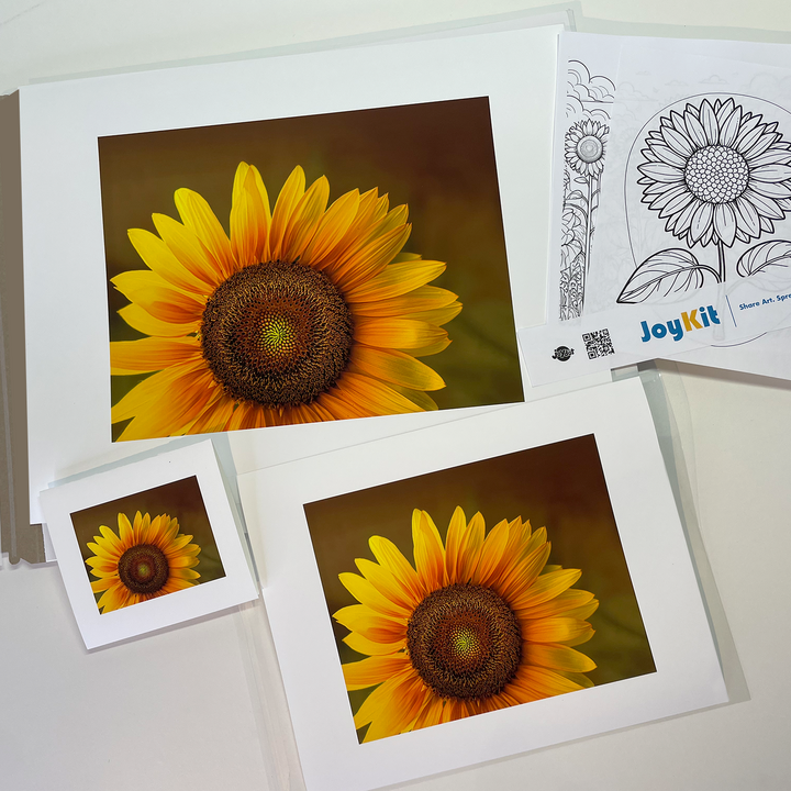 For every JoyKit™ you buy, you receive one sunflower print to keep and one to give away — a small act of kindness that helps joy travel farther.