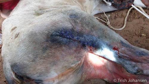 Injured calf back together again... fine work Dr Trish.