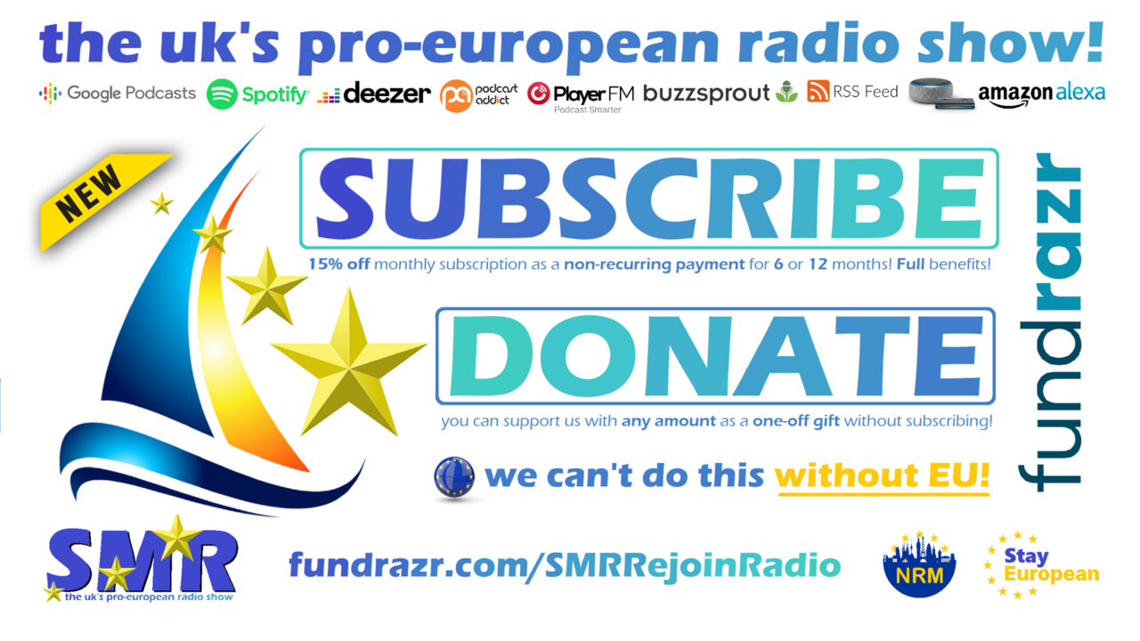 SMR is the UK's Pro-European (and fiercely Anti Brexit) Radio Show! We've been broadcasting entirely for FREE to Rejoiners since 2016. We're as old as Brexit, now in our 10th year!