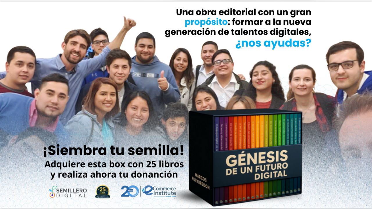 En 2025, con el lanzamiento de la colección completa de libros vivos, eCommerce Institute y Semillero Digital formalizaron una alianza por la cual se busca que cada box Genesis First Collector's Edition represente una oportunidad para los jóvenes que hoy quieren capacitarse e insertarse al mercado laboral.Buscamos el apoyo de, al menos, 300 personas que quieran unirse a esta campaña comprando una de las box y sembrando una semilla para formar a la próxima generación de talentos digitales.