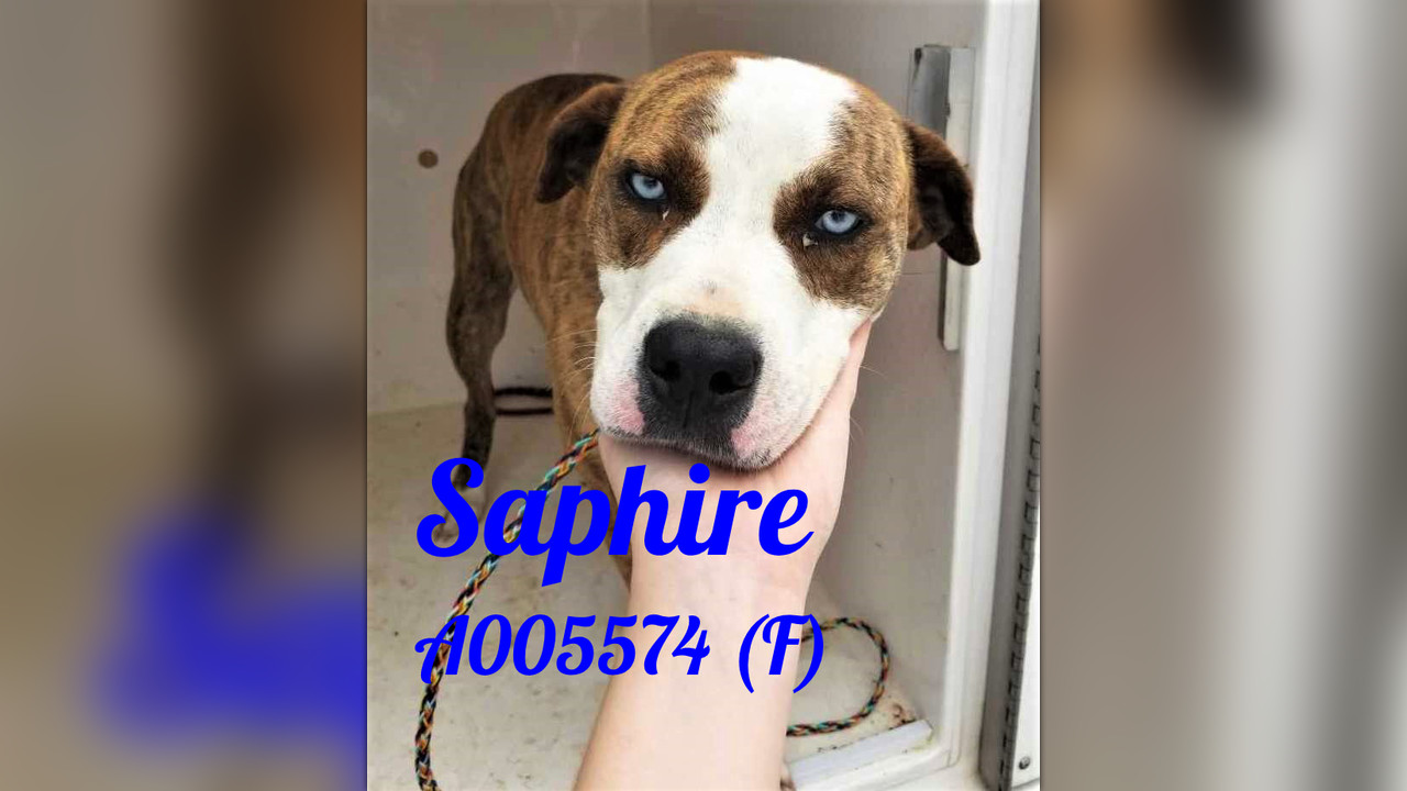 SAPHIRE is a beautiful friendly girl weighing approximately 50 lbs (kenneled with another dog) finds herself in a kill shelter.