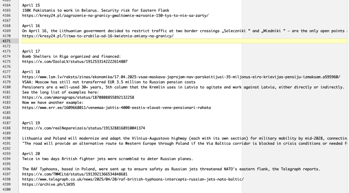 Me, Amara Graps is a concerned scientific researcher in Latvia and regional citizen with a decades-long background in data processing, space and quantum technology, and since 2022, gathering defense information. I believe that citizen-driven awareness is one of the strongest tools we have. As a solo parent of a teen, and owner of a new business, time is precious. I cannot continue tracking without your help, and I cannot create the shared spreadsheet that I believe our community needs with my time and financial constraints. With your help, I can get us to a working foundation with structured data, while I learn who else in our community might be able to help me to continue the tracking.