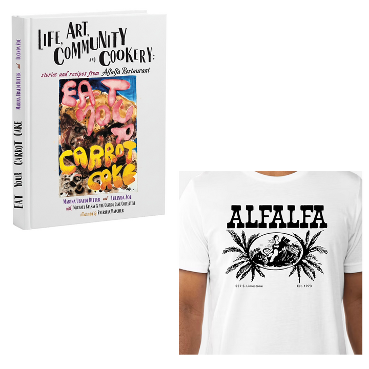 While Eat Your Carrot Cake is definitely a cookbook, sharing the sweet and savory recipes of a fondly remembered local restaurant, it is also a Kentucky community and social history. Focusing on the origins, founding principles and values of Alfalfa, it covers the first 25-30 years—the time span of the restaurant's life at 557 S. Limestone. We have sought out and engaged local artists and artisans to contribute their work and highlight their talent in the creation of the book – painters, poets, photographers, writers, and designers have all contributed to this work. While documenting and preserving the legacy, history, and recipes of this iconic cultural institution, Eat Your Carrot Cake further combines social history, family album, scrapbook, and cookbook alongside personal narratives and first-person accounts taken from the Alfalfa Oral History Project at the University of Kentucky.