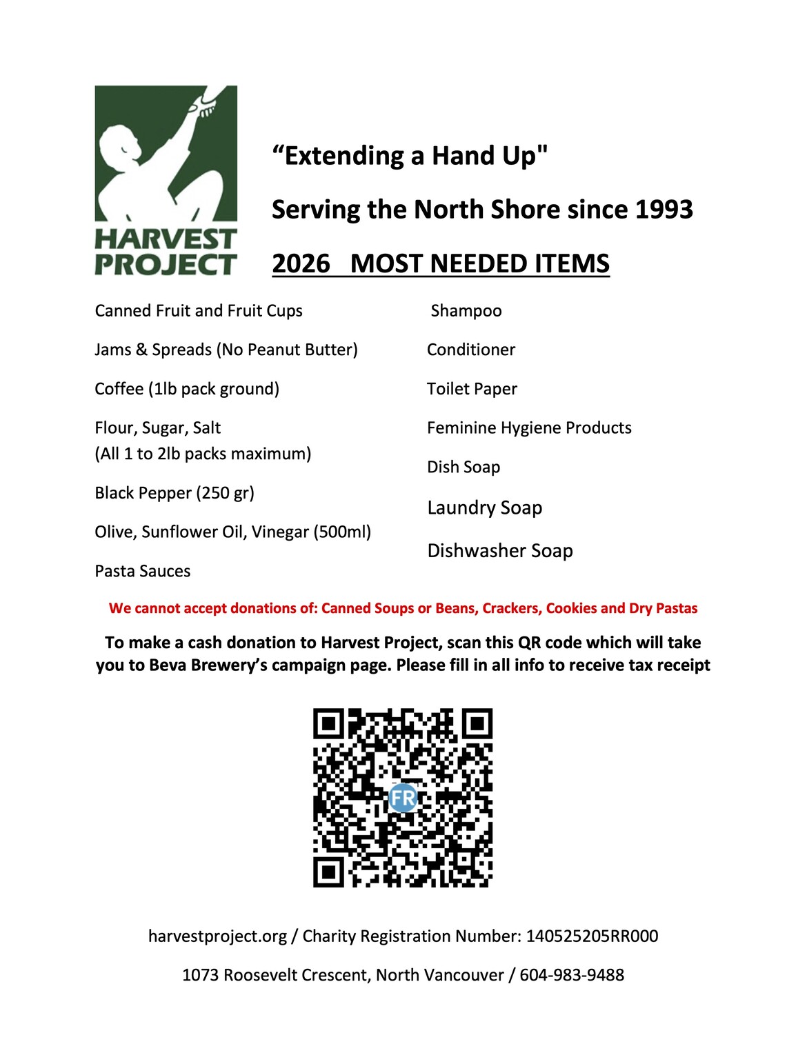 Harvest Project, please check out their 2026 list of most needed items