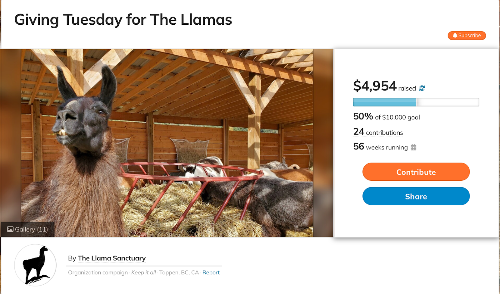 📝 Encouraging supporters to share your campaign may seem small, but it’s often forgotten. By making this simple request, Llama Sanctuary leveraged community power to spread the word and expand their reach – an effective way to amplify campaign impact.