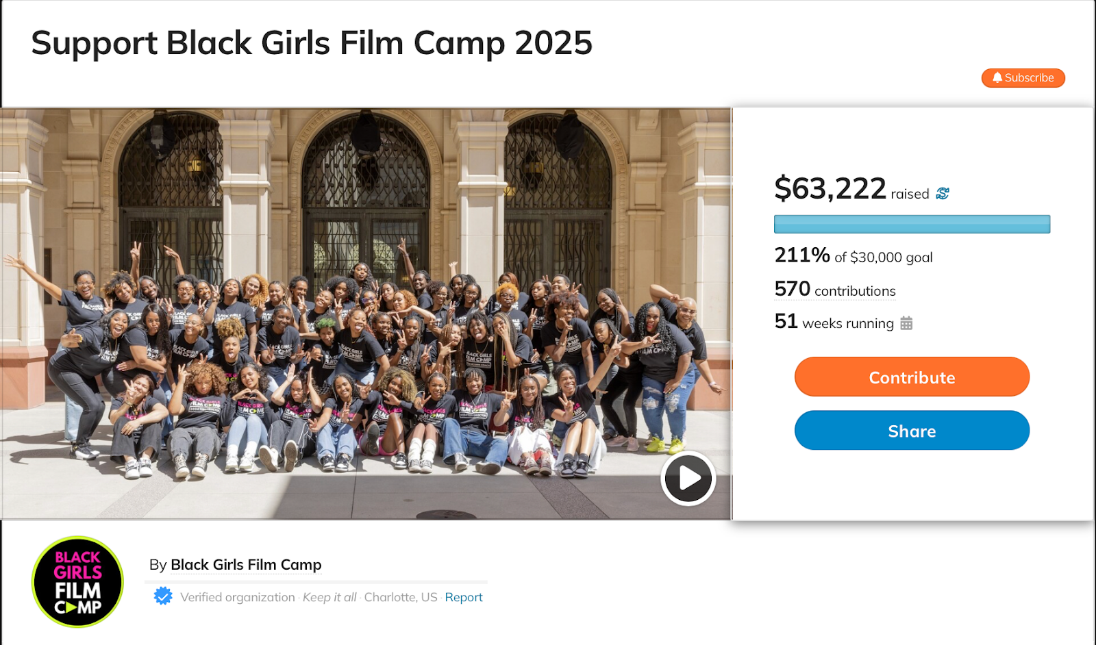 In their campaign story, they shared their mission and data on the staggering disparities Black girls face in the U.S., along with concrete examples of their impact – films produced, the size of their growing community, and more. Bright, eye-catching visuals made their message stand out, while team photos and event snapshots brought their storytelling to life, making it both engaging and memorable.