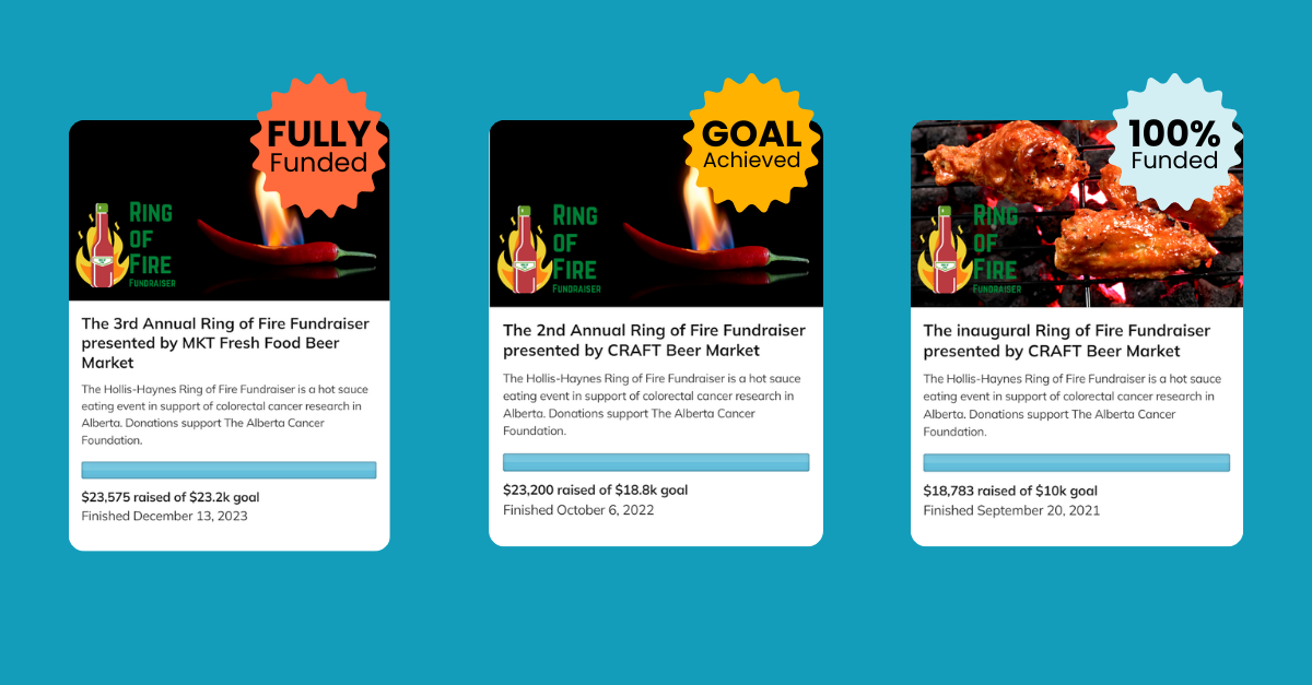 Ring of Fire’s recurring success and growth is impressive, surpassing their goal year after year. By utilizing an all-in-one platform like FundRazr, they continue to drive their impact forward with one spicy wing at a time.