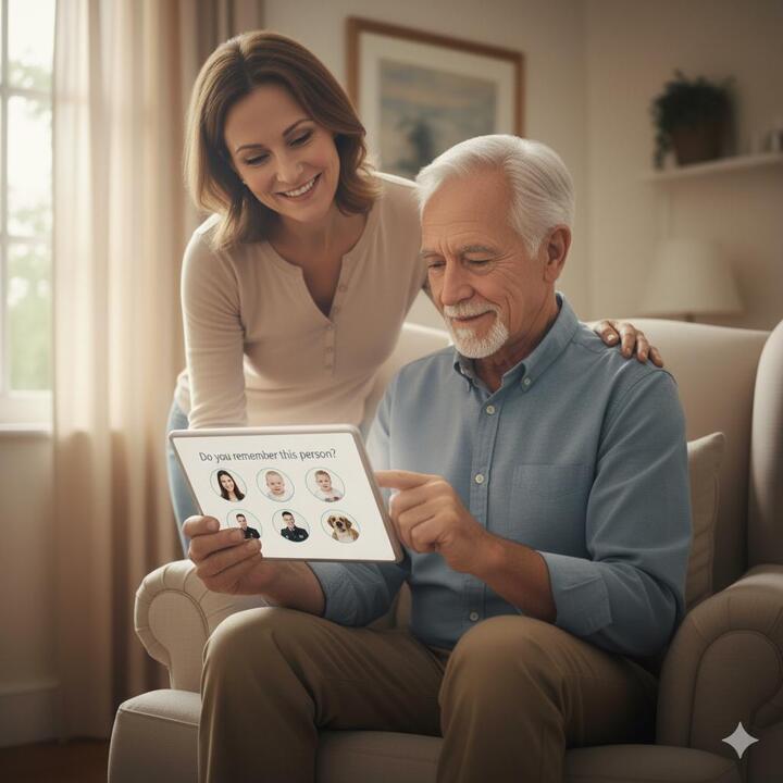 1. Caregiver-Centric Features (The "Control Panel")This app provides tools that help the caregiver organize, track, and manage the patient's entire world.* Customizable Content & Personalization: The app must allow caregivers to upload personal media (photos, family videos, favorite music, or even the patient's own clothing images). Generic games fail quickly; personalization is key to triggering genuine recall and engagement.* Remote Tracking & Reporting: Caregivers need to monitor usage and progress (or decline) from a distance.* Activity Logs: Track which games/activities were used, for how long, and if the patient showed agitation or engagement.* Goal Customization: Allow the caregiver (or clinician) to set specific goals (e.g., "Practice naming 5 family members") and track task completion.* Reminder & Daily Task Management:* Digital Calendar/Task List: Systems that allow the caregiver to input simple, repetitive tasks (e.g., "Take medication," "Call Daughter") and push them to the patient's screen as clear, visual prompts.* "It's Done!" Confirmation: A feature that provides positive reinforcement (like a sound or vibration) when the patient successfully completes a task or checklist item, building confidence.* Dyadic Communication Tools: Features that facilitate conversation between the patient and caregiver:* Voice Recording: The ability for a family member to record their voice describing a photo or giving instructions.* Simple Quizzes/Visual Prompts: Over a thousand quiz questions and images designed to tap into past memories and spark conversation.