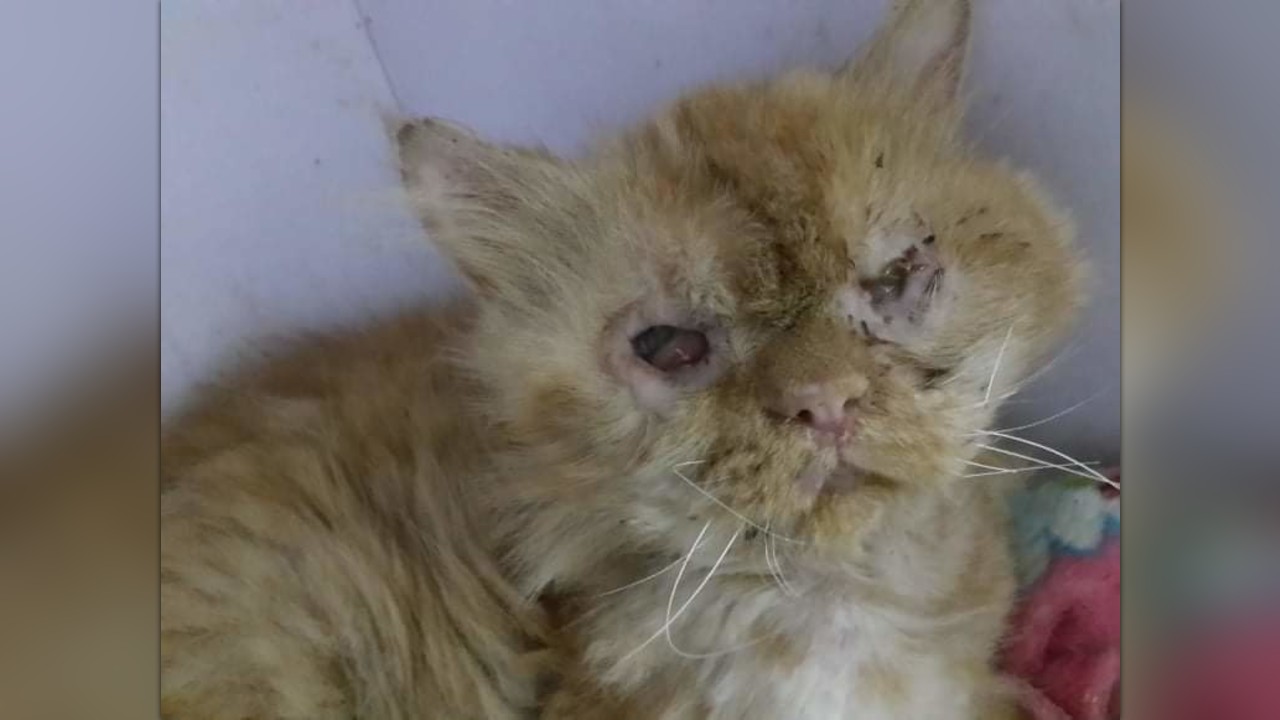 At the beginning of January, Merlin has visited the vet ,and a blood tests & ultrasound were done, and it was ok , but he is dehydrated and so weak, and by examining the eye it became clear that the cornea had been destroyed, and the doctor believed that it was possible that he had been exposed to the Herpes virus or Chlamydia and that is what caused the rapid collapse of the eye condition. The doctor decided that he has definitely lost the first eye, but there is a little hope in saving the second one, and that he will discuss the possibility of performing a surgery to implant a new lens, but until the decision is made to do the operation, he must continue to put the medical eye drops, after we failed to put Plasma in the eye because the difficulty of withdrawing the blood from him. During January, with medication, solutions, and a special food made for the sick cats to help him recover, Merlin began to recover again and gained weight.