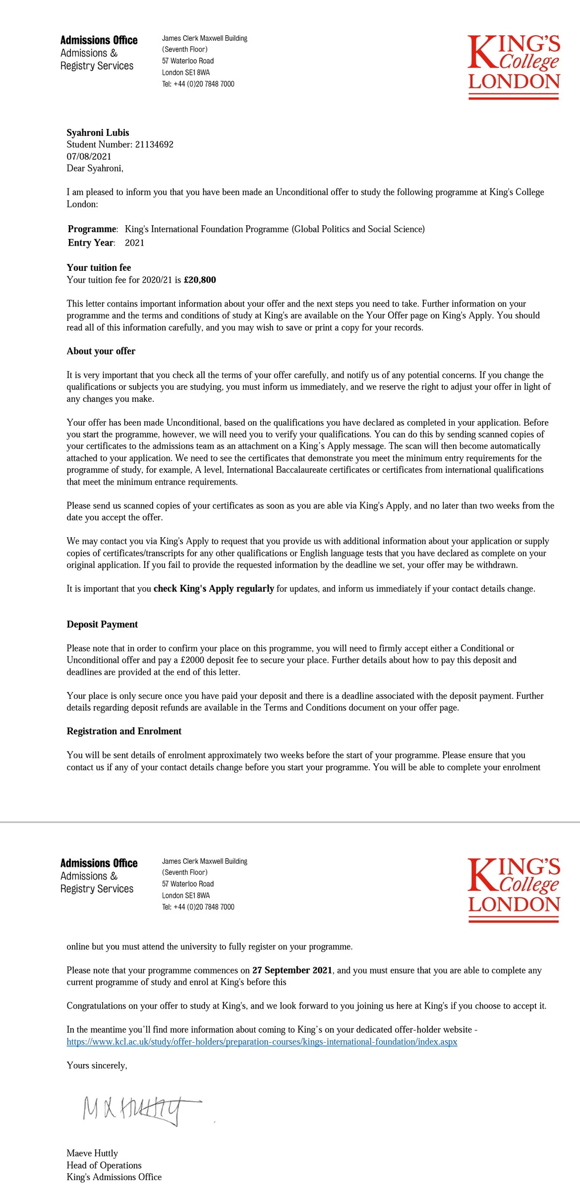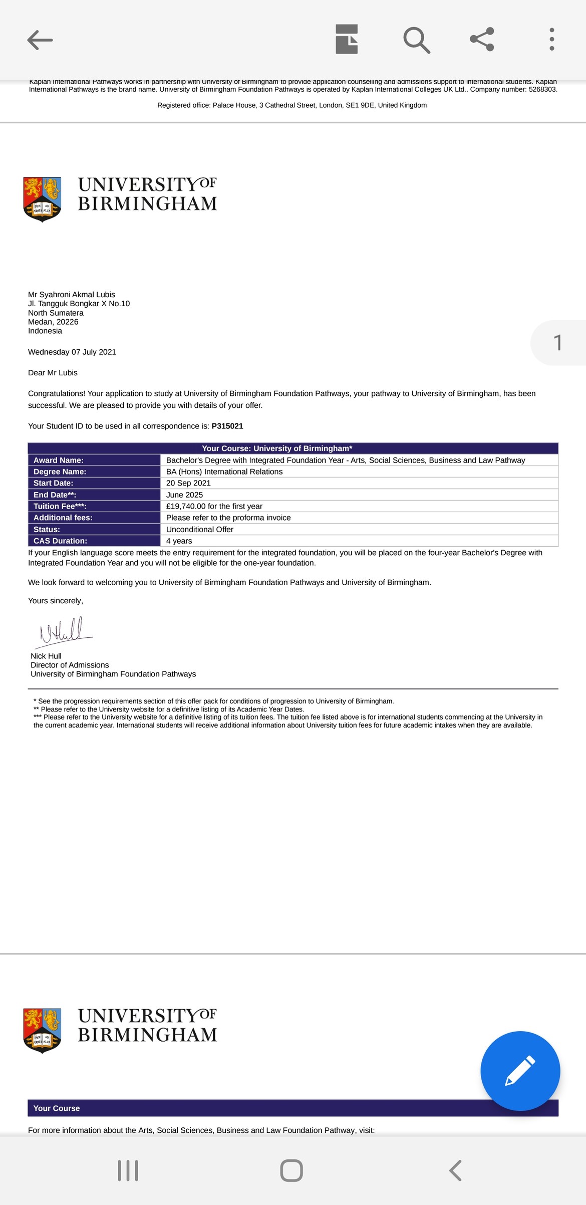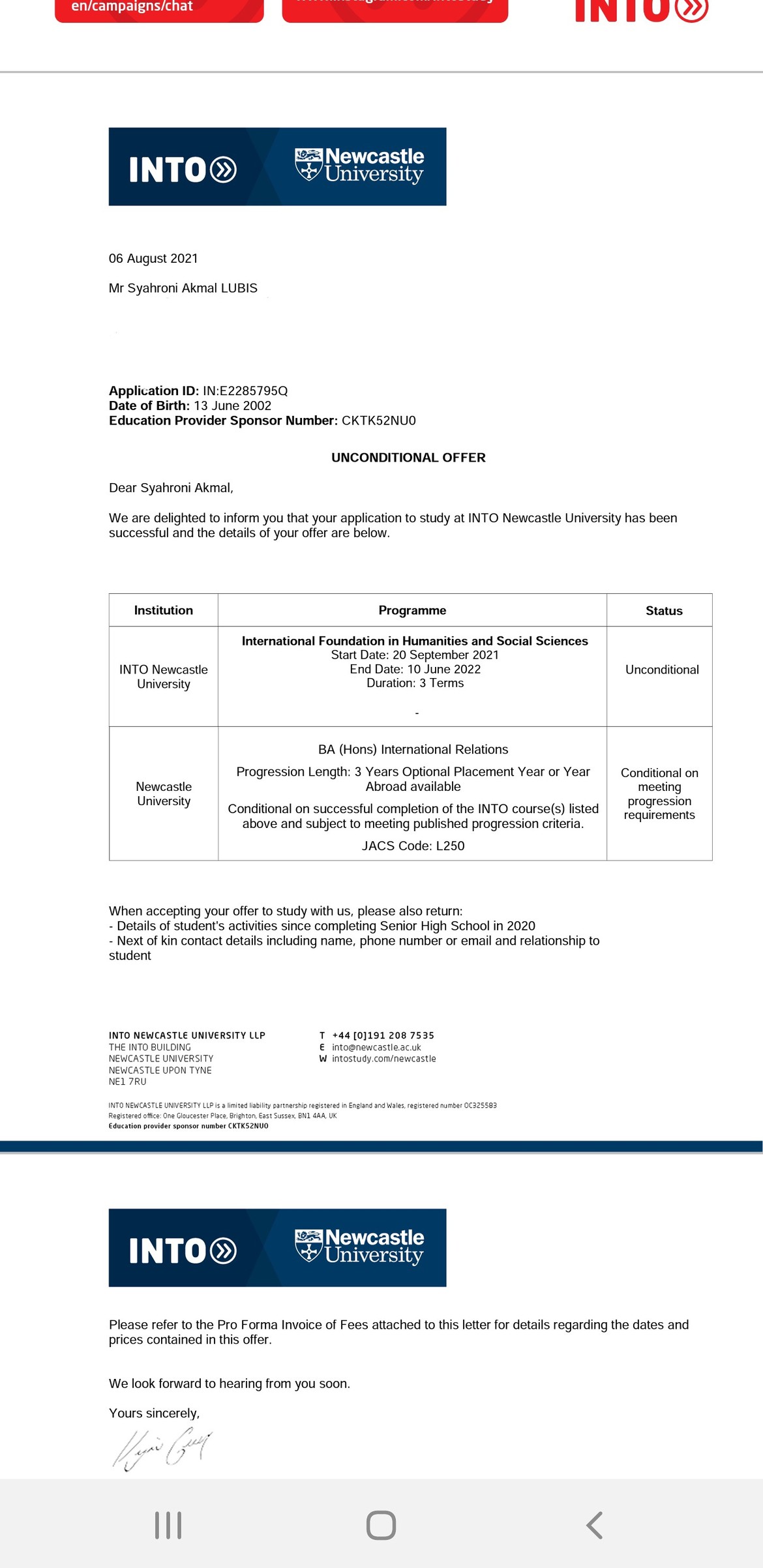 I am Syahroni Lubis, a strong-willed student from Indonesia. I am an offer holder for Global Politics and Social Sciences International Foundation Programme at King's College London, Bachelor's degree with integrated foundation year at University of Birmingham, and Humanities & Social Sciences International Foundation Programme at Newcastle University. I am fully aware that this moment only happens once in my life and opportunities don not come twice. Take it or they will be gone and the others are goin to have it.