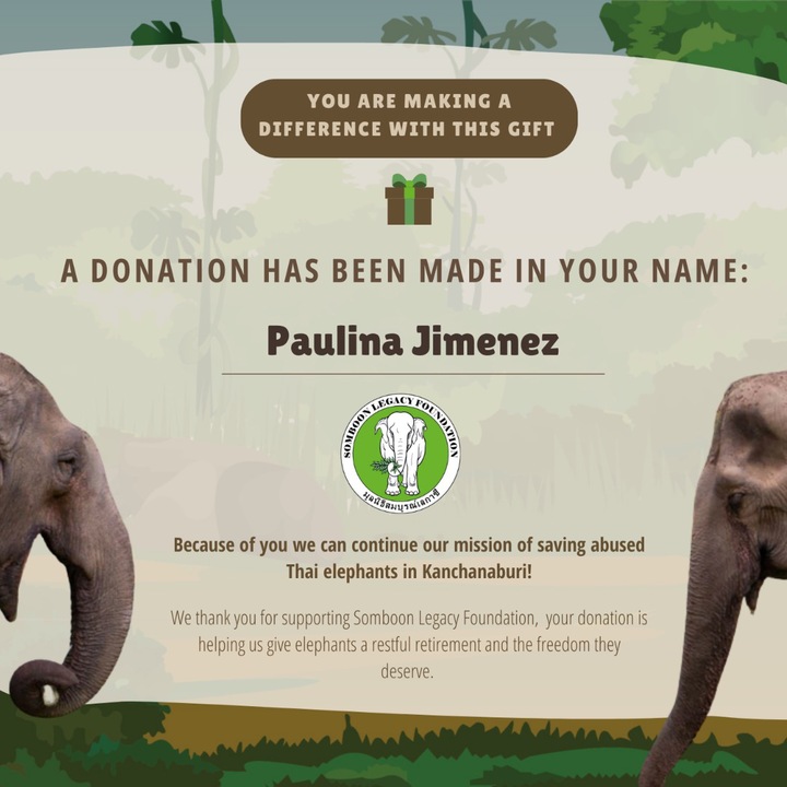 Visit our website https://somboon.org/ or send us an email at info@somboonlegacy.org to learn more about our cause, our elephants, and how you can make a difference.