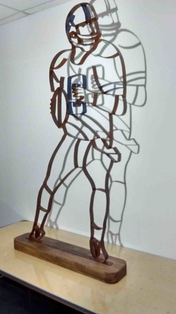 Below also is a photo of a 6’ foot tall prototype sculpture; one in a series of sculptures that I hope to complete for the Dallas Cowboys organization. My vision for the series is for each of them to be 10’ feet tall and made from 3/8th inch thick hot rolled steel; instead of the 1/8th inch steel prototypes in the photos below. I have titled this series Ten Foot Tall and Bullet Proof. It seems appropriate for a great team such as the Dallas Cowboys.
