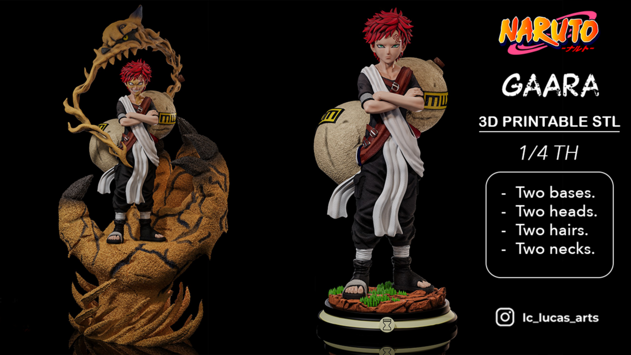 Introducing the exclusive STL of the 1/4 scale Gaara statue, a masterpiece for collectors and 3D printing enthusiasts. This unique piece captures every detail of the Sand Shinobi with stunning precision — from the fluidity of the sand molded by his Jutsu to the relentless gaze that carries the strength of Shukaku.