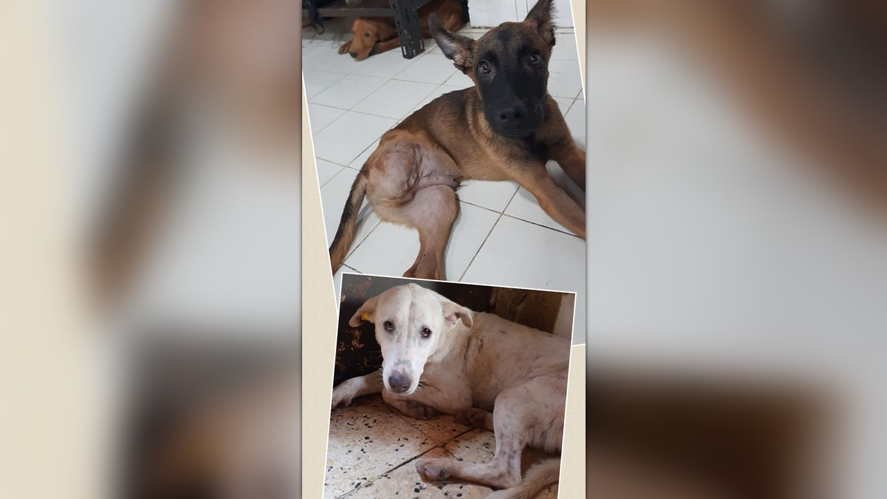 Trying to slip out of his chains he pulled his metal box and it fell on his foot resulting in a broken leg (only to be discovered after several days after his continuous crying) .. Habib chewed on his cast ..also to be discovered after 10 days from his screaming that it's no good ..to be done for a 3rd time resulting of a tiny small white worms eating up his flesh ..