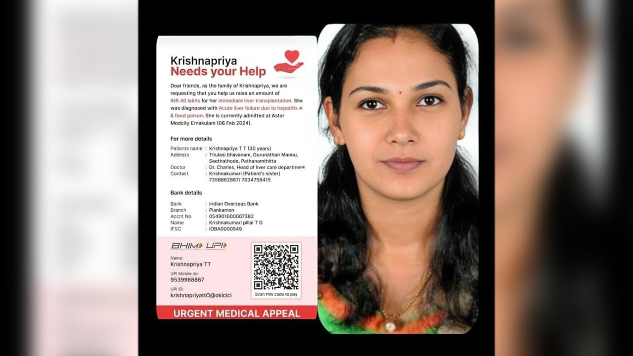 Dear friends, as the family of Krishnapriya, we are requesting that you help us raise an amount of INR 40 lakhs ($50000) for her Immediate liver transplantation. She was diagnosed with Acute liver failure due to hepatitis and food poisoning. She is currently admitted at Aster Medcity Ernakulam (06 Feb 2024).