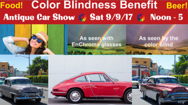 Did you know that 8% of men and 1 in 200 women are color blind? That’s 13 million in the US and nearly 100,000 in Kansas City alone. You can help them enjoy more of life’s colorful experiences! Brill Eye Center and Plymouth Owners Club have teamed to raise funds to help colorblind people see more color by giving them Enchroma color blind glasses. Join us Saturday, September 9 from 12-5pm for an antique car show to benefit the colorblind in Kansas City.