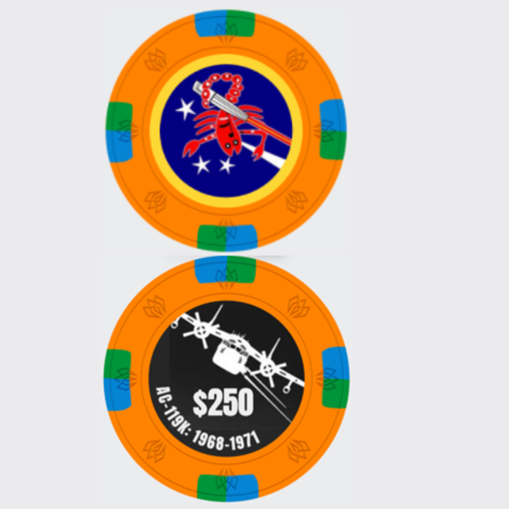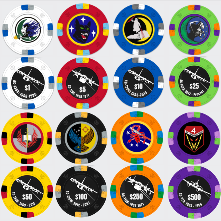 This is a non-profit project to produce and distribute a set of historic Gunship poker chips. Each chip represents a historic gunship squadron on the front and aircraft on the back. There isn't an associated fundraiser connected to this project. This is just an opportunity to produce a set of cool gunship poker chips and connect past and present gunship Airmen. The prices listed are essentially what is needed to produce the chips. However, any excess funds will be donated to the Air Commando Association.
