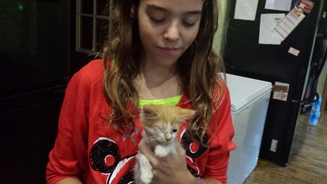 This post from Wanda showed up in my facebook feed 9/24: Kahlan Van Horn recently rescued a couple kittens they were starving full of fleas and in very poor health.I am so proud of what she did and am proud to know she has such a big heart. Instead of buying a laptop which she really wanted. She was using the money she had been earning all summer to care for and nurse these kittens back to health. One of the kittens required surgery because of the neglect they had experienced before we found them.